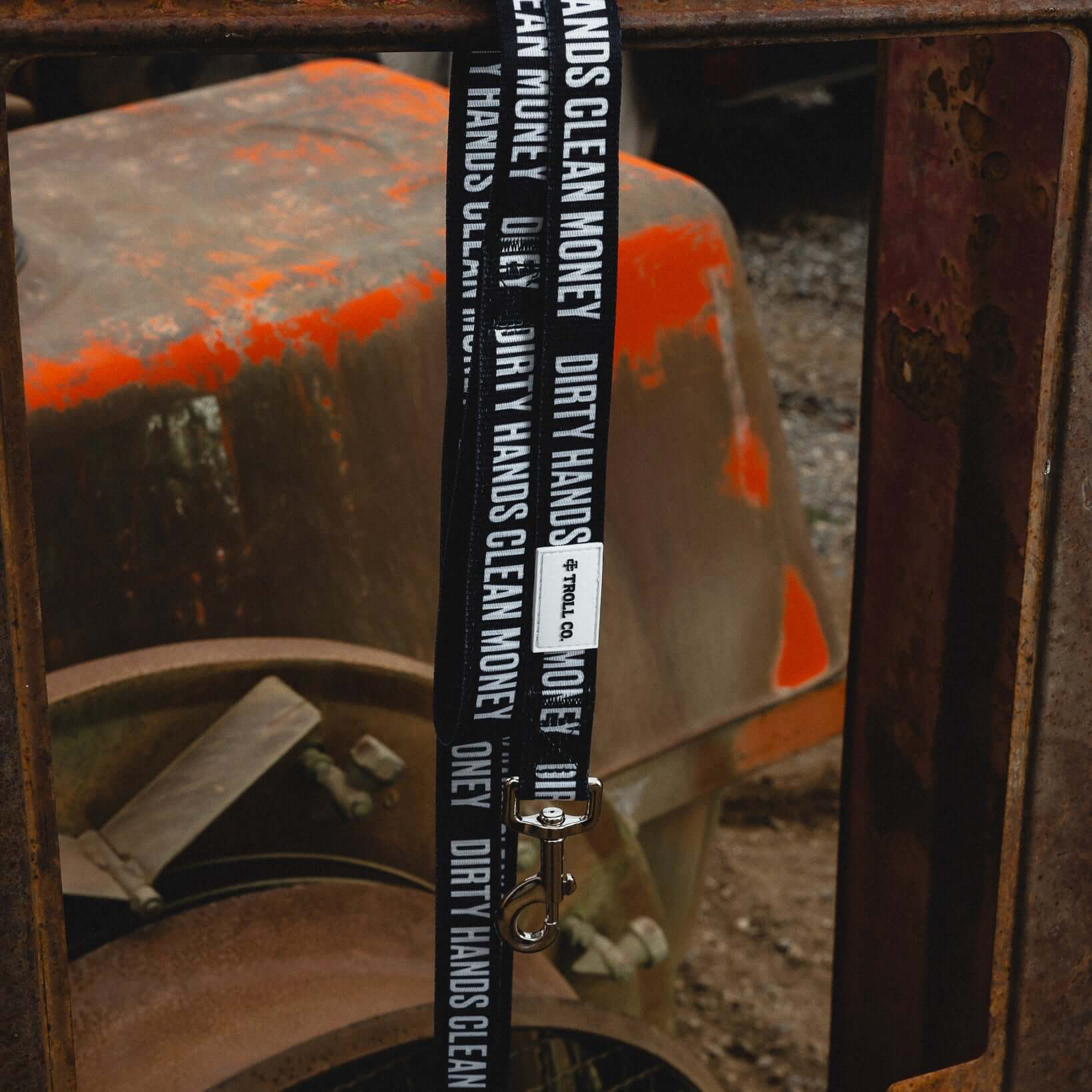 The DHCM Heavy Duty Leash, designed with the slogan "Dirty Hands Clean Money," is built tough for your favorite hound, perfect for medium to large dogs. Whether you're at the job site or out hiking, this leash ensures your canine companion stays safe, secure, and by your side. Pair it with our matching DHCM Heavy Duty Collar for a rugged and coordinated look.